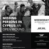 Εκδήλωση για τους Αγνοουμένους της Κύπρου με θέμα « Οι αγνοούμενοι της Κύπρου – μια ανοικτή πληγή».