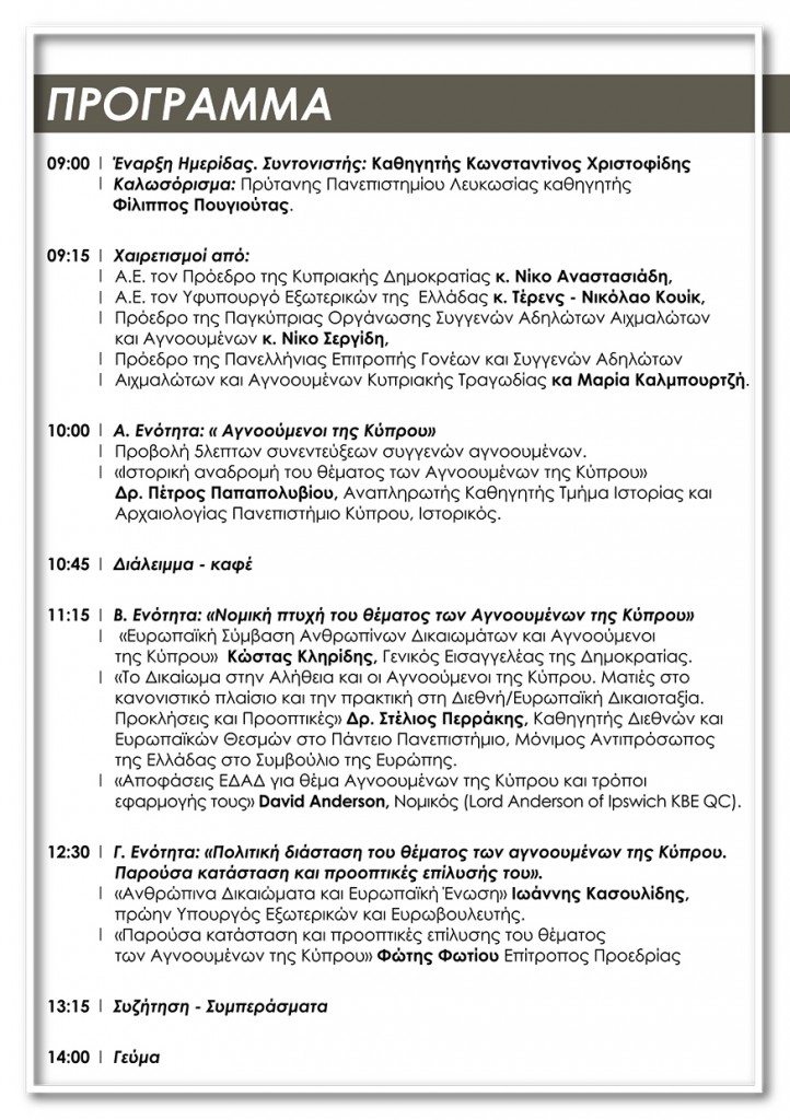 Ημερίδα "Ανθρώπινα Δικαιώματα και Αγνοούμενοι της Κύπρου" - Πρόσκληση
