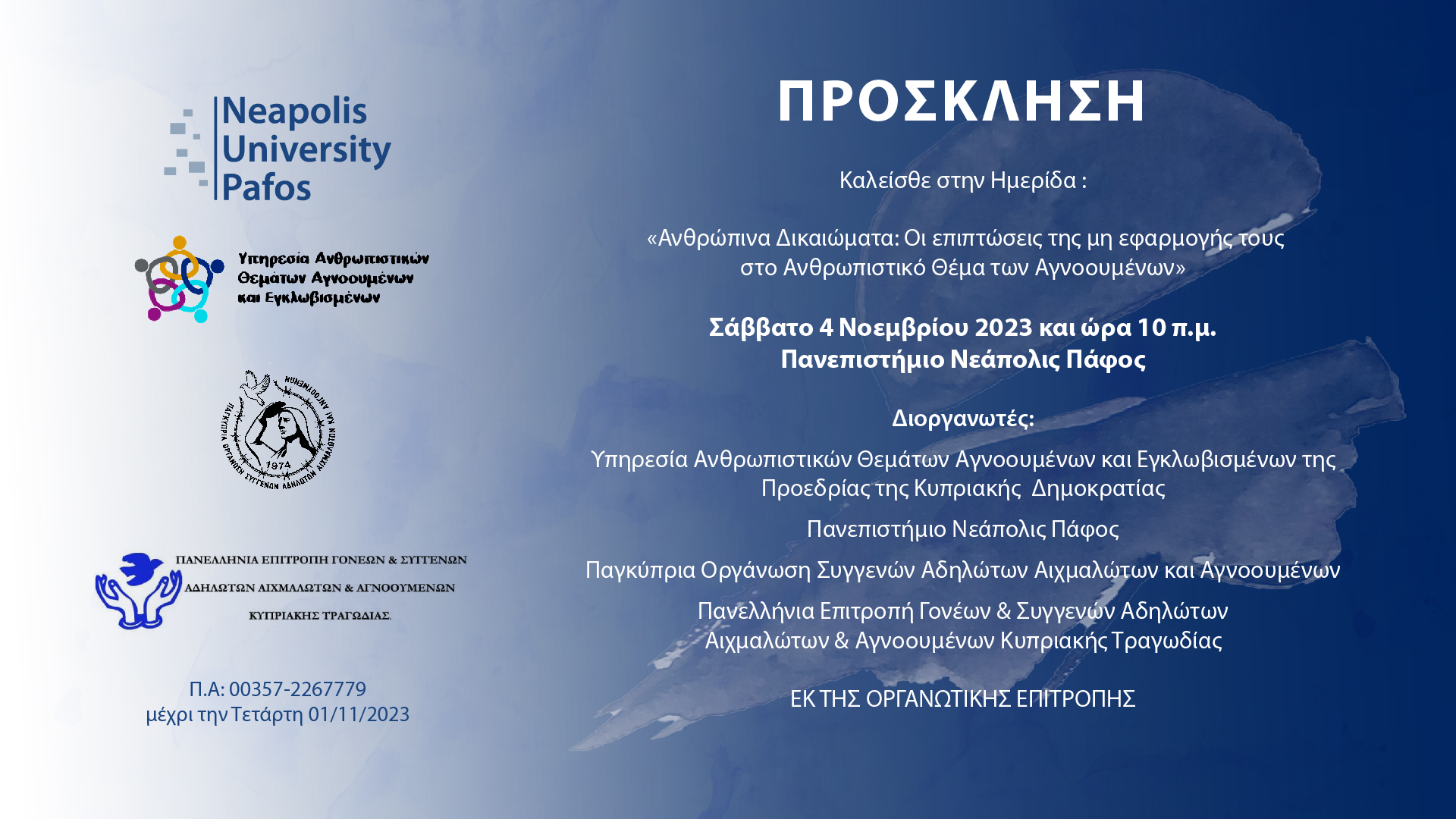 Ημερίδα "Ανθρώπινα Δικαιώματα: Οι επιπτώσεις της μη εφαρμογής τους στο Ανθρωπιστικό Θέμα των Αγνοουμένων"